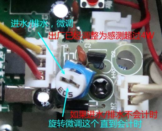 进水/排水感测微调方法(可微调成投币后立即计时) |
