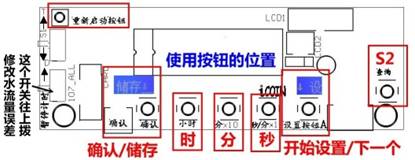 先通電,投幣後指示燈會亮,代表輸出沒問題,然後對著水流量計吹氣,顯示幕數字會變化,就代表全部沒問題,再安裝。 安裝好後,先測試調整水流量的誤差。 |