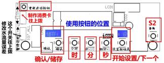 制作消费卡,将S1(主板左上角)开关往上拨 按一下重新启动按钮 制作完毕,将S1往下拨即可 |