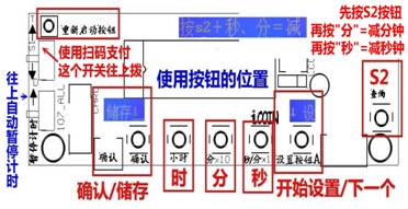 开关S1:选择是否显示扫码支付画面,测试的时候要结束计时,按S2按钮 |