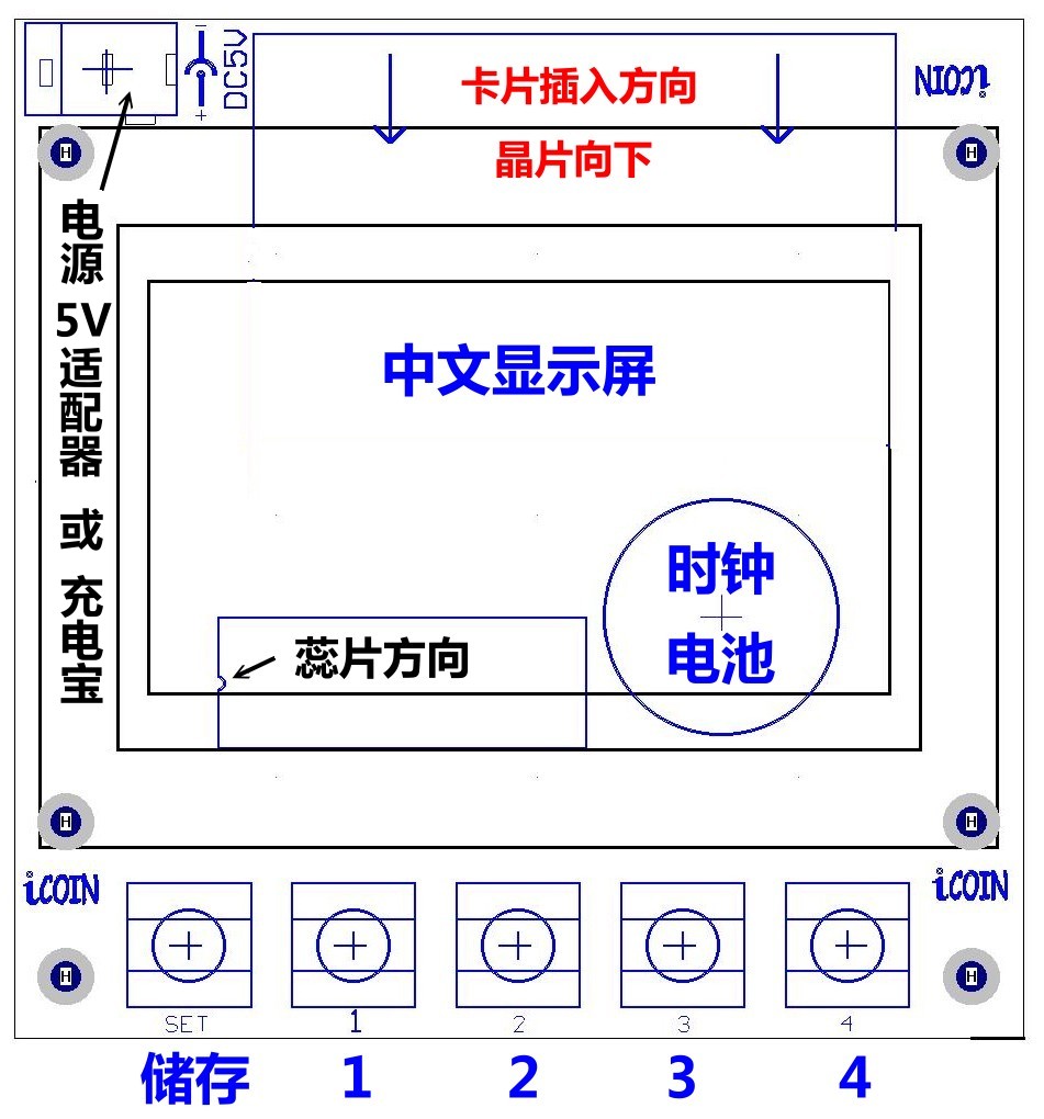每个按钮循环0~9 按钮(SET)=储存 取出卡片后下面的部分就不会储存了 |