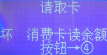 当卡片损坏会显示(请取卡) 如果是消费卡,按下按钮(4) 其它的卡片请勿使用本功能,否则会出现乱码 |