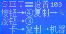 设置本张2号卡的机器码,每个按钮循环0~9 插入卡片阅读机,就会更改卡片阅读机的机器码 4/5号卡插入卡片阅读机会自动记录对应的机器码,以后就只能使用在对应的卡片阅读机 |