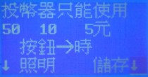 擇投幣器可接收的硬幣 範圍:5,10,50三種 按按鍵(時)輪流顯示 5,10,50/10,50/不使用投幣器 |