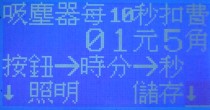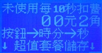 每多少時間扣費一次 範圍:0~99元9角 0元=顯示幕不顯示這個設備的說明,對應的按鍵不能使用