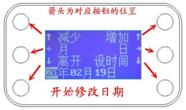 查看型号,出厂日期 在修改,年,月,日这里 按着离开按钮不放 大约5秒钟后 |