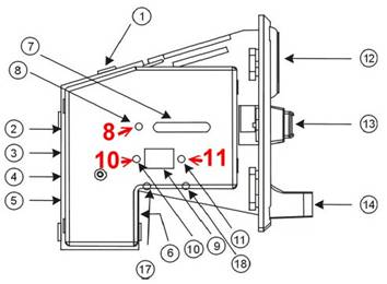 press the buttons on both sides (10, 11)of the display (9) |